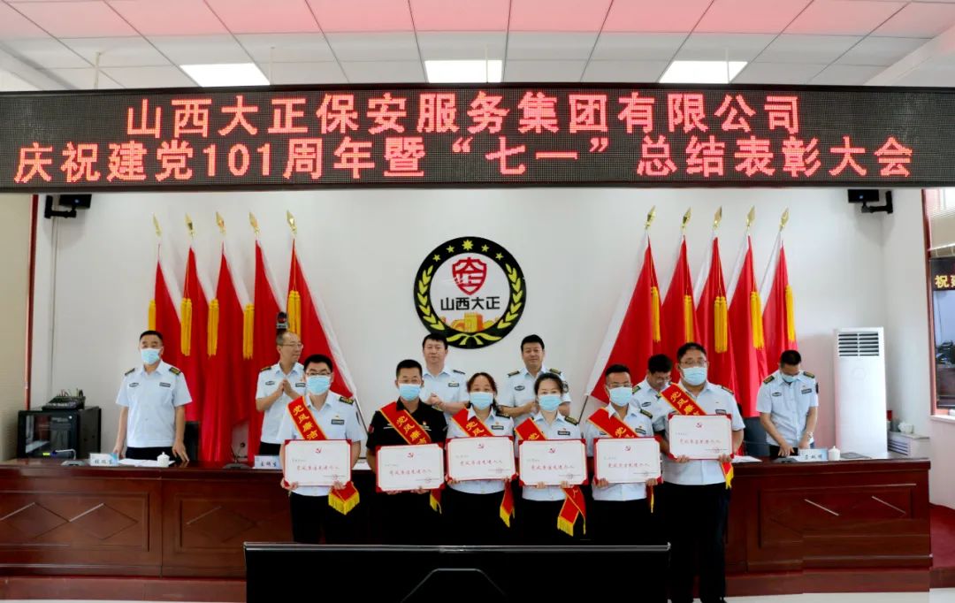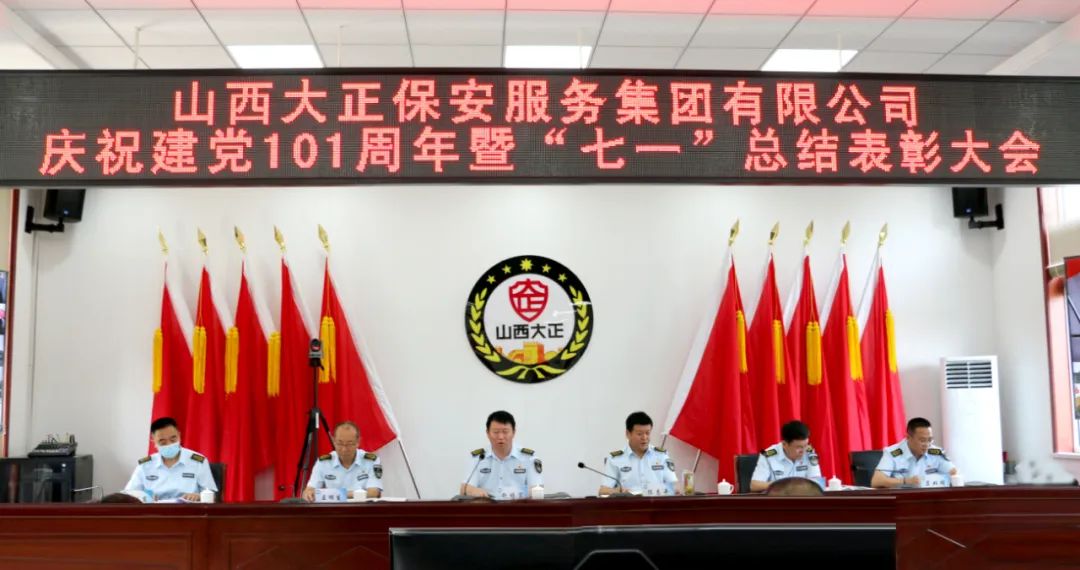 2022年6月30日上午,山西大正保安服務(wù)集團(tuán)有限公司召開慶祝建黨101周年暨“七一”總結(jié)表彰視頻會議,總結(jié)公司一年來黨建及其它各項工作,安排部署下一階段黨建及其它各項工作,表彰一批先進(jìn)基層黨組織、優(yōu)秀黨務(wù)工作者、優(yōu)秀共產(chǎn)黨員和黨風(fēng)廉潔先進(jìn)個人。動員公司各級黨組織和廣大黨員干部職工進(jìn)一步統(tǒng)一意志、開拓創(chuàng)新、拼搏奉獻(xiàn)、扎實工作,推動公司持續(xù)健康、快速發(fā)展,增強(qiáng)黨組織的創(chuàng)新力、凝聚力和戰(zhàn)斗力,推動公司各項事業(yè)取得新成績、再上新臺階。