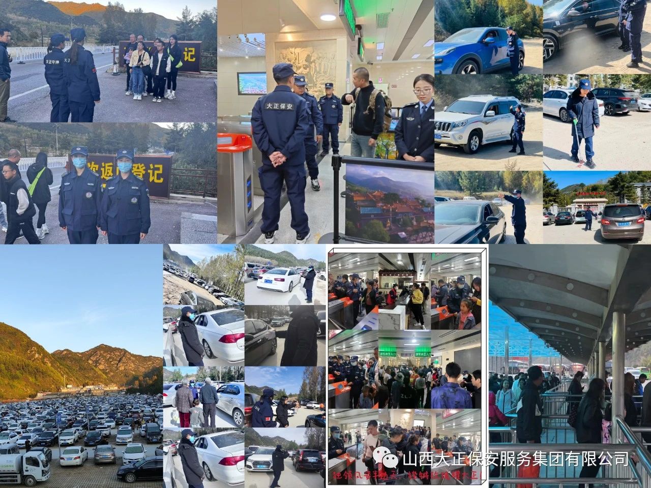 9月28日下午,山西大正保安服務(wù)集團有限公司抽調(diào)精兵強將200余人,開赴五臺山風(fēng)景區(qū)執(zhí)行勤務(wù),全體出勤隊員精神煥發(fā),士氣高昂,整裝出發(fā),他們舍棄“中秋”與家人的團聚,放棄“雙節(jié)”假日休息的機會,以大局為重,忠誠奉獻,擔(dān)當(dāng)作為。當(dāng)晚指揮部與五臺山風(fēng)景名勝區(qū)管委會協(xié)調(diào)溝通,確定執(zhí)勤崗位及人數(shù),9月29日全員上崗,開始為期一周的安保勤務(wù)工作。執(zhí)勤隊員24小時不間斷對游客、車輛進行指導(dǎo)、指引,確保游客行得順、玩得暢。10月5日上午,此次安保勤務(wù)工作圓滿完成。
