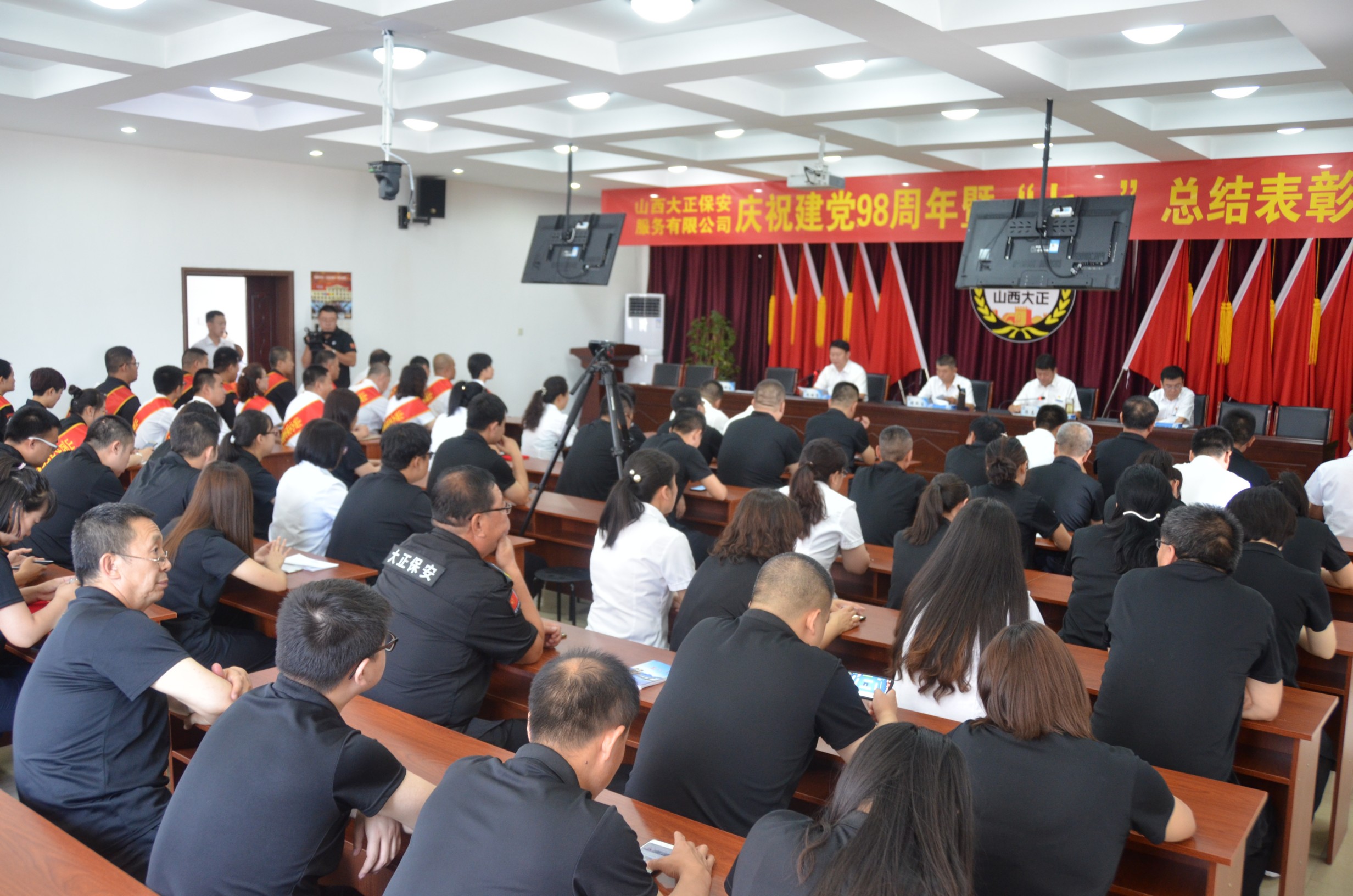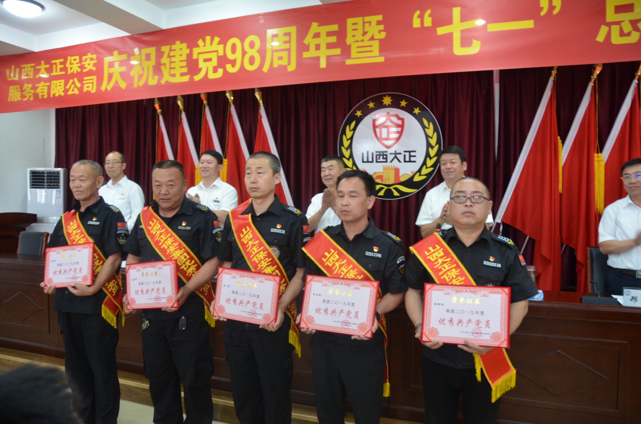 為隆重紀念中國共產(chǎn)黨建黨98周年,回顧黨的光輝歷程,發(fā)揚黨的優(yōu)良傳統(tǒng),充分發(fā)揮黨員干部的先鋒模范作用,7月1日,山西大正保安服務有限公司慶祝建黨98周年暨“七•一”總結(jié)表彰大會在公司四樓會議室隆重舉行。張躍生、陳志平、趙培宏、王明生、邢春生、張瑞東、呂雙明等公司領導出席會議,機關全體員工、受表彰的先進集體和個人代表參加會議。黨委副書記、副總經(jīng)理陳志平主持會議。