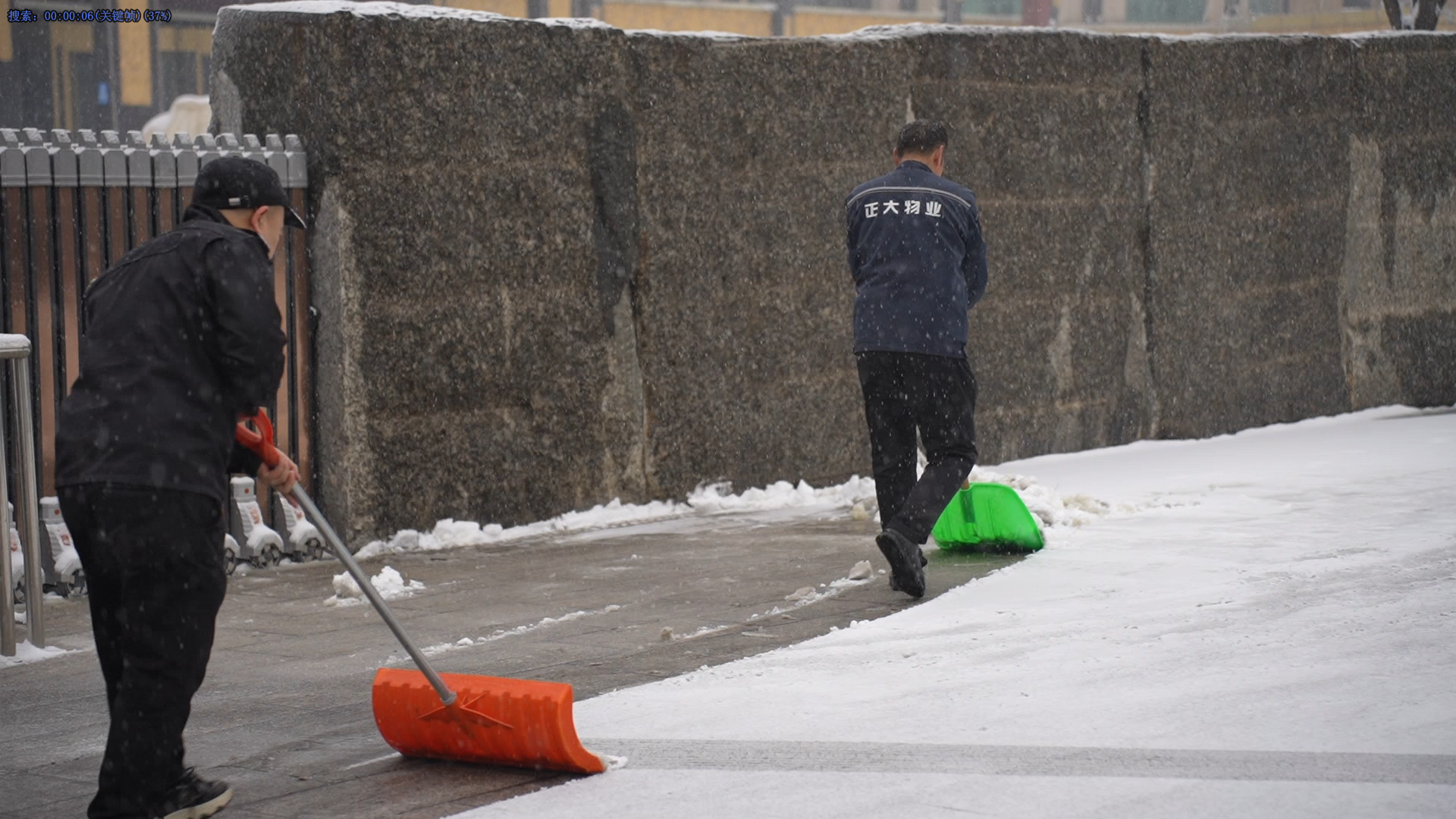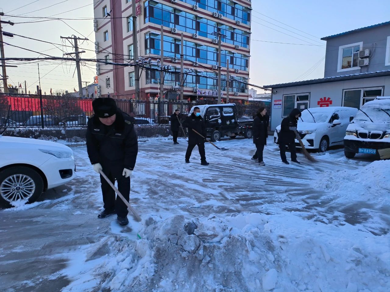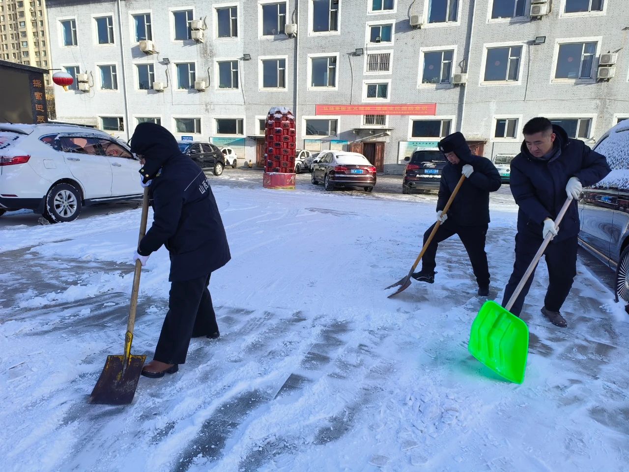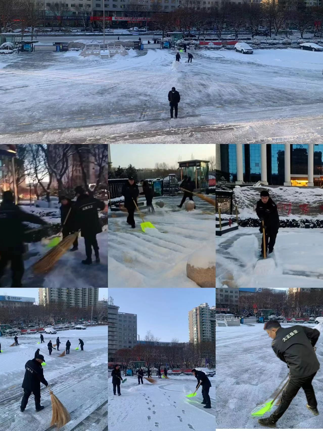 清掃積雪的工作看似簡單,卻充滿了挑戰(zhàn)。積雪已經(jīng)結(jié)成厚厚的冰層,路面濕滑,每一步都需要小心翼翼。盡管如此,保安隊伍從不畏懼嚴寒和困難,始終保持著高度的責任感,認真負責地完成任務(wù)。無論是周邊的道路,還是進出頻繁的停車場,哪里有積雪,哪里就有我們忙碌的身影。在大家的努力下積雪很快被清理干凈,確保了每條道路暢通無阻,為客戶單位提供了一個安全、便捷的環(huán)境,為市民的安全出行保駕護航。