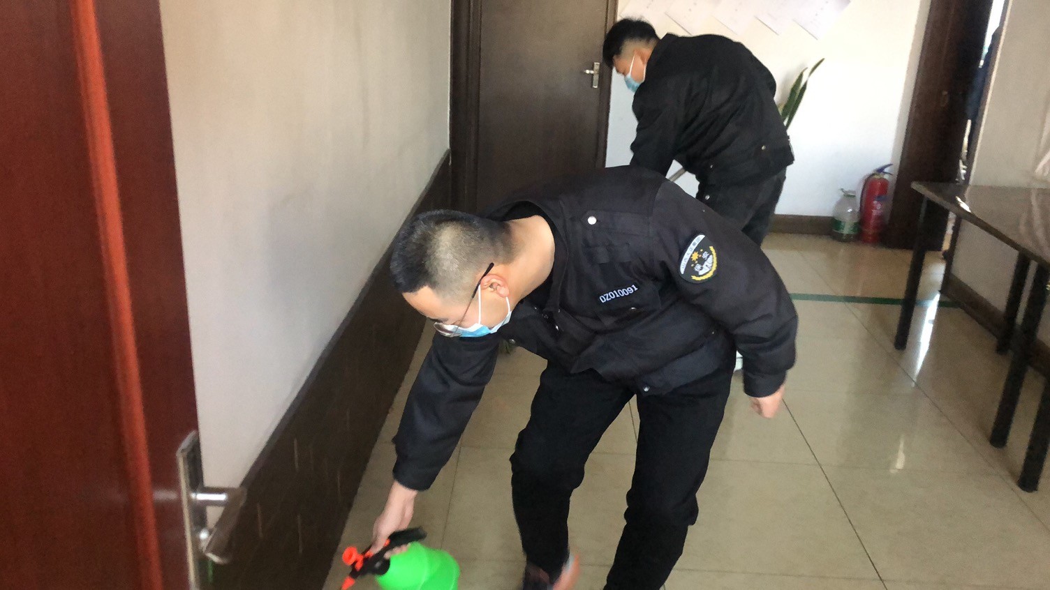 在集體學習集團公司文件后,張小平要求:一是加強衛(wèi)生知識宣傳。利用微信群、電子屏、宣傳欄等廣泛宣傳疫情防控衛(wèi)生健康知識,號召全體監(jiān)控人員養(yǎng)成講衛(wèi)生、愛衛(wèi)生、勤洗手等良好的個人衛(wèi)生習慣,做好自我防護工作。自覺佩戴口罩、手套,勤洗手、勤消毒、勤通風,不斷提高自身免疫力和抵抗力。二是嚴抓環(huán)境衛(wèi)生整治。組織在崗人員全面清理站區(qū)內(nèi)所有部位環(huán)境衛(wèi)生。對監(jiān)控室、食堂、衛(wèi)生間等進行清潔打掃,做到無死角、無盲區(qū)。加大清掃頻次,減少垃圾滯留時間,鏟除病毒生存空間。尤其對肢體接觸頻繁的門把手、洗手臺、水龍頭等部位做到重點消毒、反復擦拭,確保不放過任何一個遺漏部位。食堂工作人員每天對食堂、操作間、庫房等衛(wèi)生進行徹底打掃和清洗,及時清理廚房垃圾。三是嚴格做好自身防護。上崗前由組長檢查上崗人員手套、口罩等防護用品的佩戴情況,佩戴不規(guī)范的及時糾正。各科室加強檢查,對在崗期間未嚴格佩戴防護用品人員嚴格規(guī)定。四是“堅守安保崗位,及時監(jiān)督警示,真誠服務到位,助力戰(zhàn)“疫”完勝。”監(jiān)控中心日常工作就比較繁重,監(jiān)控、核查、布防、撤防、登記、提示等,24小時的值守。在人員緊張的情況下,通過語音呼叫對講及時提醒庫內(nèi)人員戴好口罩、禁止吸煙等情況。簡潔的話語,誠摯的提醒,在防控冠狀病毒嚴峻形勢下,監(jiān)控中心沒有一名員工退縮。