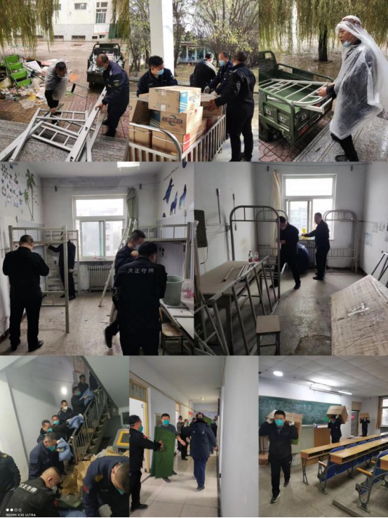 疫情就是命令,防控就是責(zé)任。隊(duì)員們第一時(shí)間和集團(tuán)各部門(mén)領(lǐng)導(dǎo)、職工進(jìn)入忻州師院東校區(qū)隔離點(diǎn),開(kāi)始了緊張有序的后勤工作,組裝高低床,冒雨搬運(yùn)床板,往樓上運(yùn)送物資,以時(shí)不我待、爭(zhēng)分奪秒的緊迫感,每天工作約14個(gè)小時(shí),累了就在原地物資箱子上坐著休息一會(huì)兒,經(jīng)過(guò)和大正同仁幾天的連續(xù)奮戰(zhàn),14日,師院東區(qū)隔離房間配套設(shè)施已全部完善,下午5點(diǎn)隔離人員陸續(xù)入住,隔離區(qū)開(kāi)始封閉管理。
