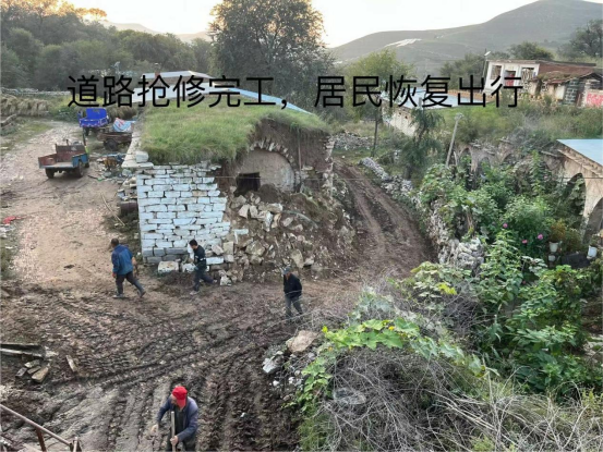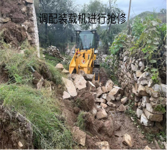 在搶修過程中,工作隊(duì)與村民們共同克服了惡劣天氣帶來的困難,裝載機(jī)的操作手精準(zhǔn)地移除了坍塌的土石,而其他人員則協(xié)助清理現(xiàn)場,確保了搶修工作的順利進(jìn)行。經(jīng)過數(shù)小時(shí)的緊張勞動,破損的窯洞得到了妥善處置,村民們的生活出行秩序得以恢復(fù)。