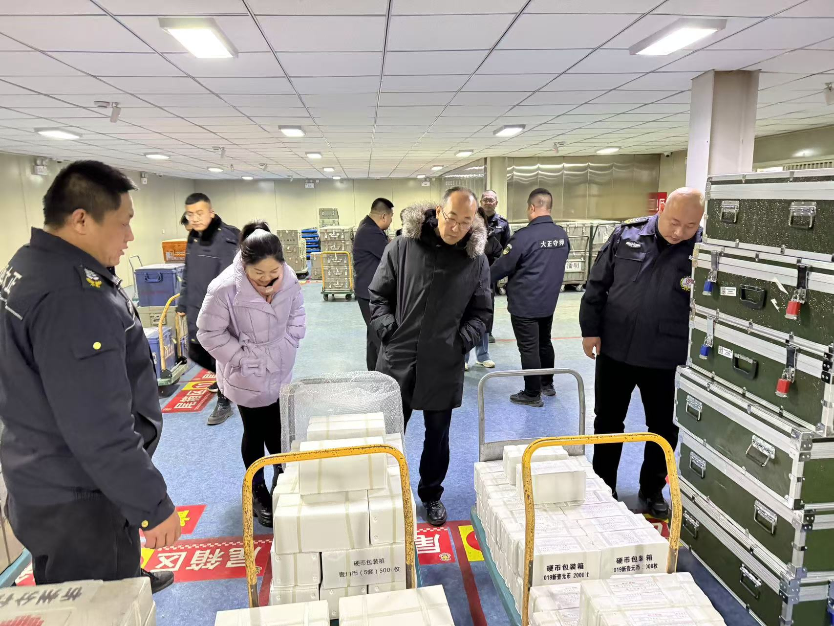 集團公司黨委委員、副總經理王明生,黨委委員邢春生,總經理助理、守押公司經理寇星云,總經理助理羅鵬生,副經理韓美芳、吳杰和相關部門負責人分別在城區(qū)守押一大隊中心庫駐地和監(jiān)控中心遠程監(jiān)控室看望堅守在一線的隊員,對中心庫金庫款箱(包)存放情況進行現場督導檢查。在監(jiān)控中心通過遠程監(jiān)控畫面查看各中隊金庫款箱(包)入庫存放情況并聽取各大隊負責人視頻匯報工作。